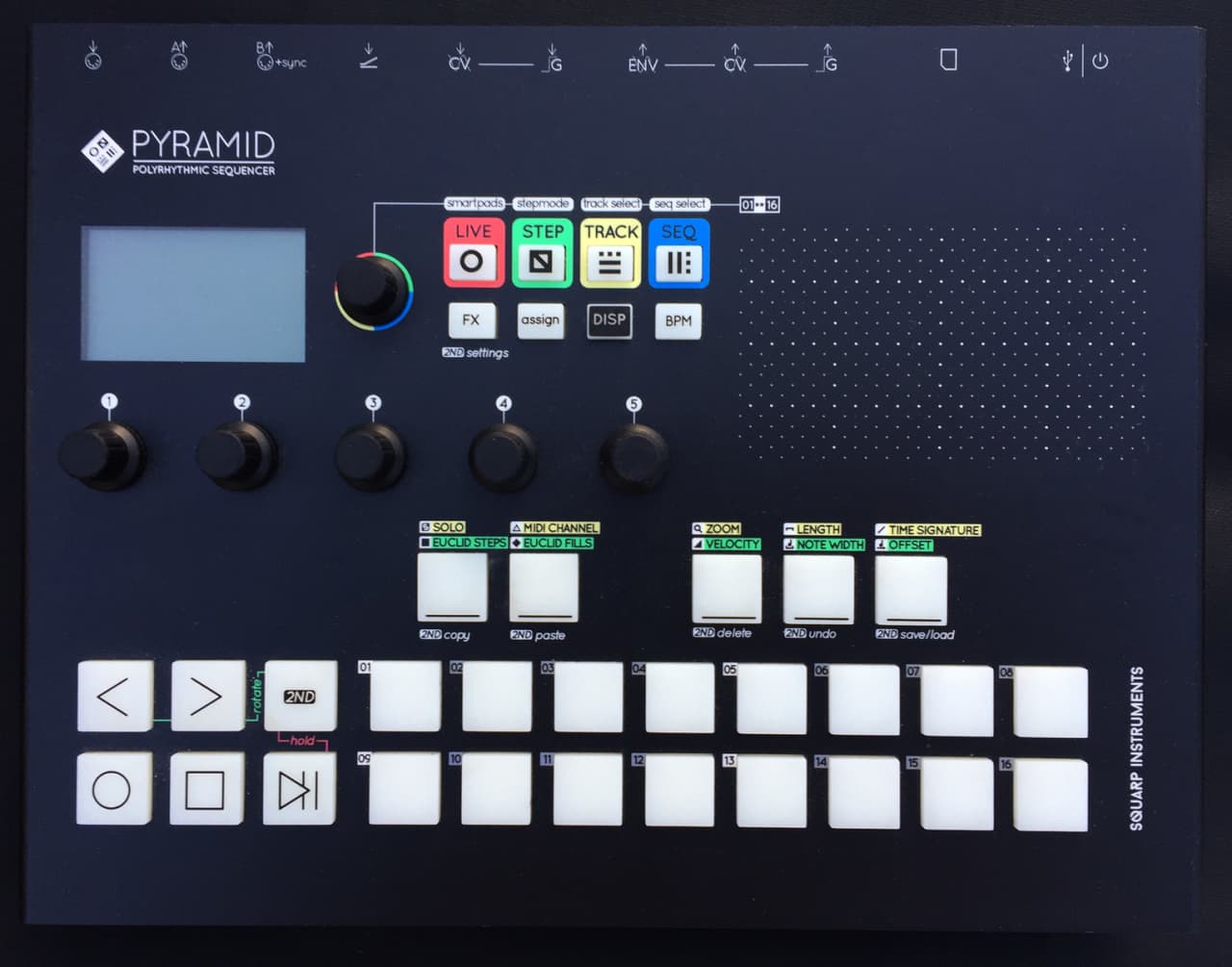 and an input+output interface. pyramid does not produce sounds. instead, we have focused our energies on creating an innovative and complete sequencing solution full of creative tools. pyramid is an instant
