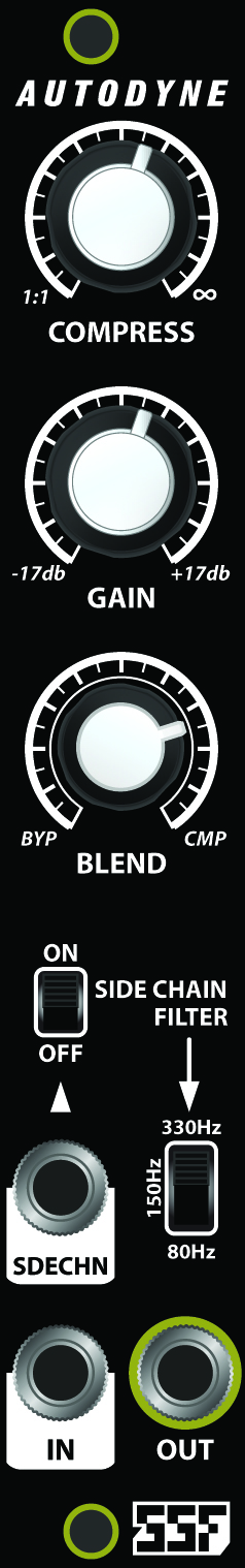 autodyne is a 4hp auto-compressor/distortion featuring a multi-mode side chain filter and ny style parallel compression blend control.