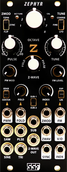 zephyr is a bit of a mashup of the excellent trackability and octave switching found in the spectrum vco and the complex waveform generation of the zero point oscillator along with some additional unique features to create a powerful analog vco.