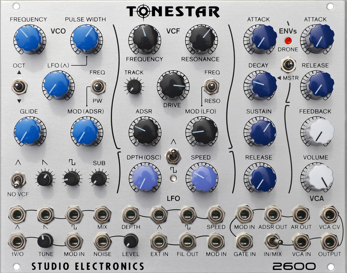 tonestar 2600 is an arp® 2600-styled synth voice, 31 years in the shaping, pre-patched like pearlman's prized 2600, and fully "outs to outs" modular. connect cv / gate and twist 'n' switch, or pull its tones