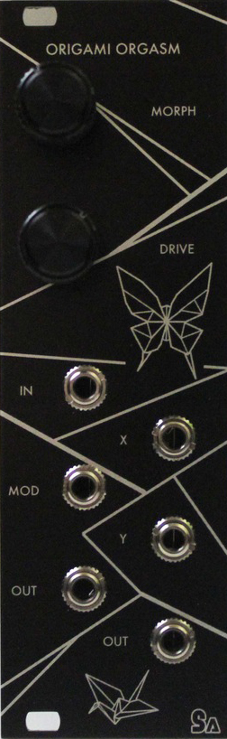the wavefolder (left side of panel) consists of two "stacked" lockhart stages followed by an overdrive. the morph knob controls interaction between the two stages. the drive knob increases the folded