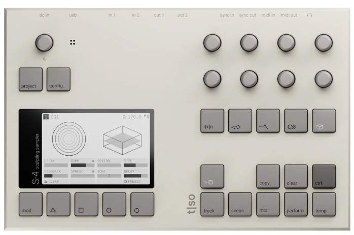 the s4 is a sculpting sampler designed to capture and transform sounds. merging tape-era workflows with cutting-edge technology, the s4 redefines sound mangling by providing a futuristic platform for crafting unique soundscapes and compositions using samples and real-time audio processing.
