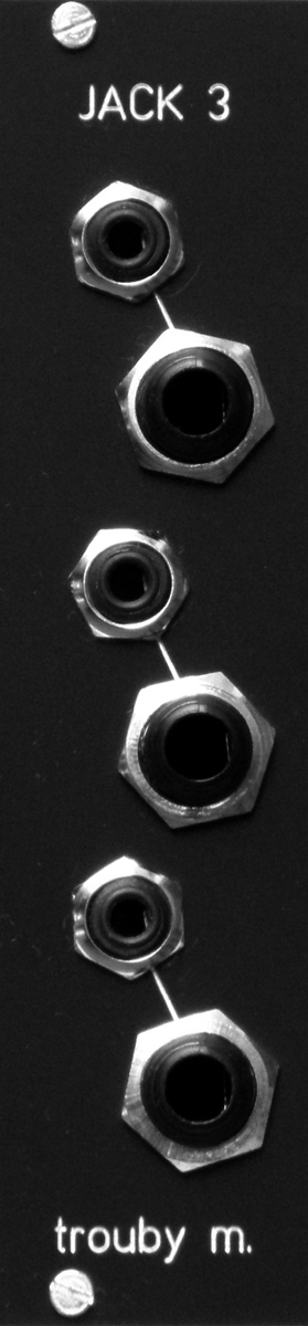 converter for 3 little to big jacks, panel eloxated & engraved. 6 hp width.