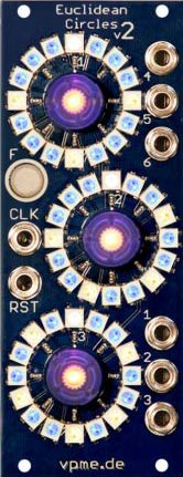 the all new v2 of the 6-channel 16-step euclidean rhythm generator with an unique pattern visualization in 10hp - now with even more features!