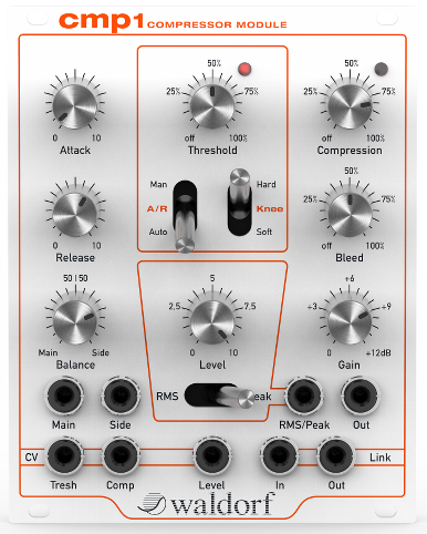 the cmp1 has all the features you expect from a modern compressor including attack and release control, automatic and manual modes, hard and soft knee as well as output gain and bleed amount of the original