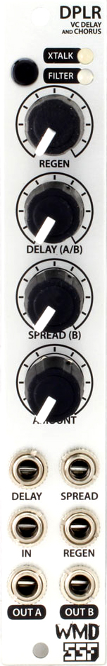 dplr is a delay module with two interactive delay lines, each with 750ms of delay time.