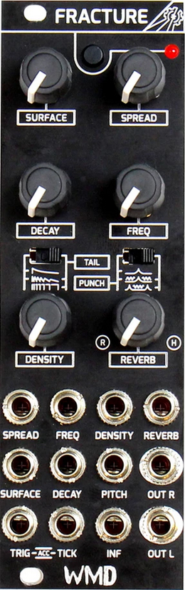 originally inspired by audience applause, hip-hop samples, and classic drum machines, fracture is a multi-particle percussion synthesizer that applies concepts from classic analogue clap circuits to granular
