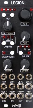 legion is a new breed of analog oscillator with tons of individual waveform outputs, a host of useful cv inputs, and a few never-been-done-before analog tricks.