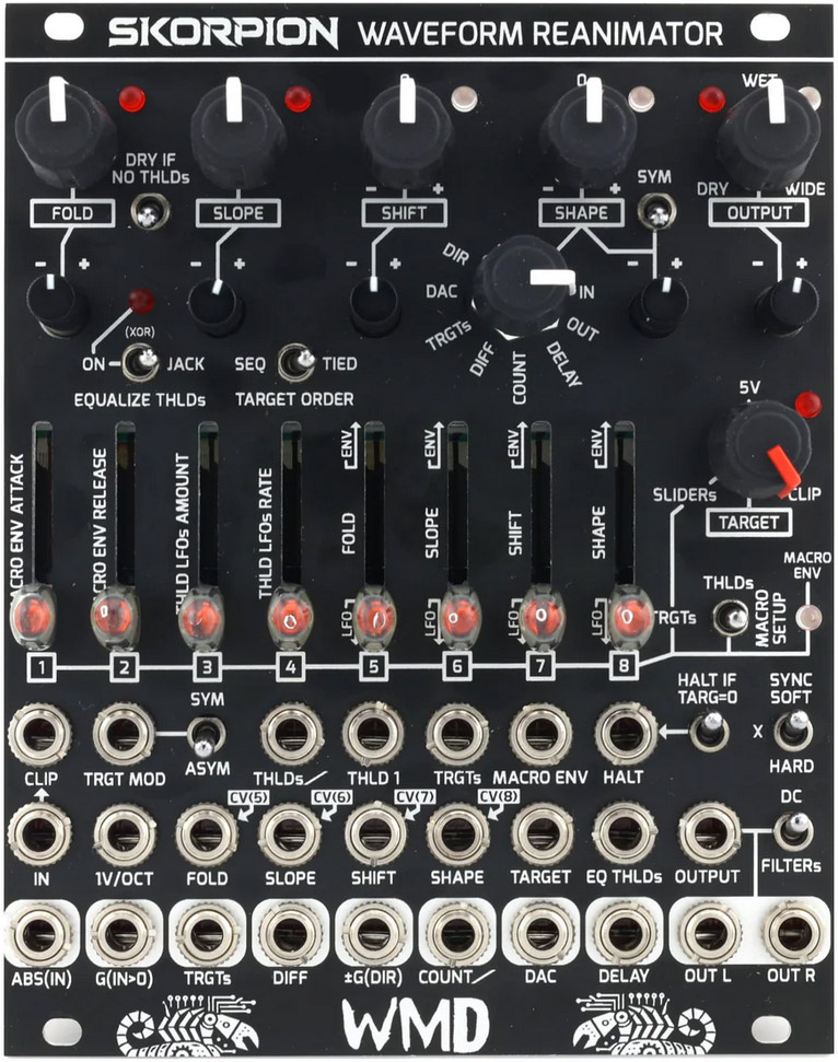 An 8-stage analog wavefolder that transforms simple waveforms into complex, evolving sounds using precision threshold and target voltage controls. Features intuitive fader interface, 13 internal modulation sources, macro envelope system, and stereo processing. Offers subtle to extreme harmonic manipulation with CV control over all parameters. Includes unique vector core technology with feedback options and real-time animation capabilities.
