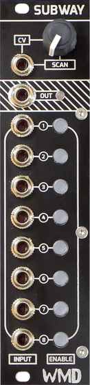 introducing subway, an 8 input, 1 output scanning crossfader in 6 hp. transit for your signals!